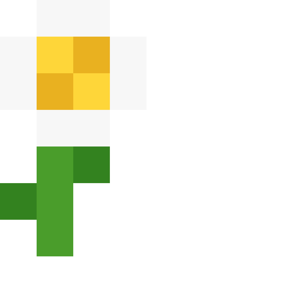 Daisies appear as small flowers, with a green stem, and yellow petals at the top and an orange center.