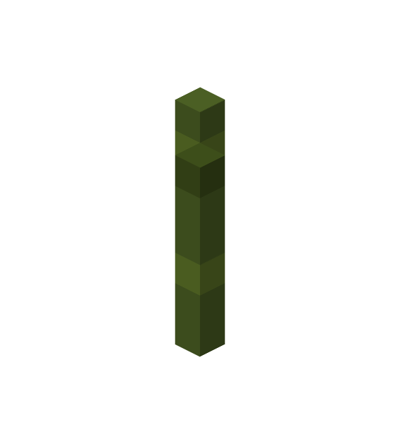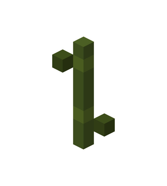 Dangling vines looks like a dangling rope but is green and has some cubes (“leaves”) attached to it.