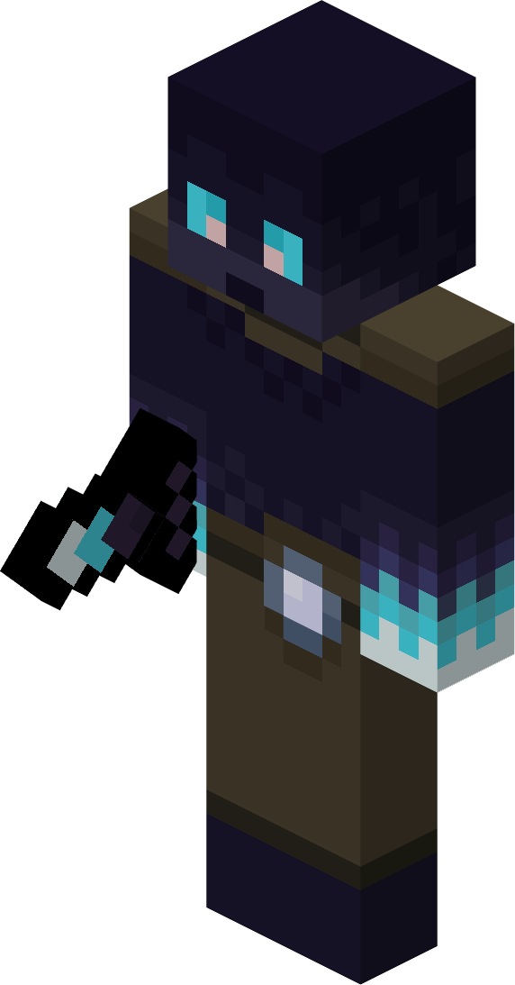 Draugr Knights look dark purple with frosty hands and a chained chestplate while holding a Knight Sword. They also have blue eyes like the Draugr Skeleton, Draugr Zombie, Frost Skeleton and Frost Zombie.