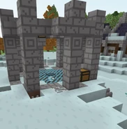 The Mysterious Ruins in the Frozen Badlands are very similar to the ones in the other Biomes, but do not let their looks deceive you. These ruins contains mob spawners of Frost Zombies and Draugr Knights, instead of the regular Draugr Zombies and Skeletons. There are sometimes also gray carpets scattered around the ruins, but there are stone spikes under those carpets. The best way to clear out the Mysterious Ruins in the Frozen Badlands is to get packed with Diamond Gear for killing mobs and a Moonstone Pickaxe to mine the Spawners and Stone Spikes when you fall in a trap. Also get blocks for pillaring up when falling into the trap.