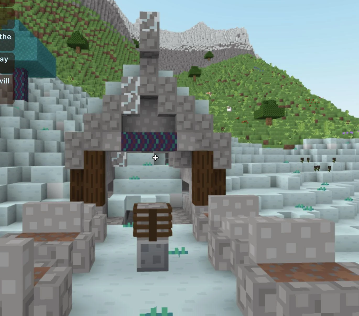 Structures are groups of Blocks that are only naturally placed in a certain way. They can generate in different locations of Open Worlds. There are currently five types of structures in Bloxd.io, which are the: Mysterious Ruins, Lava Pools, Jungle Ruins, Frozen Ruins and Underground Ruins. They can be mainly found in open world game modes, like Survival, Peaceful, Creative and Factions. There are extra preset structures in Factions which which are the shop, the camps, the Sand Mine and Wood Mill. However, they seem to be more of a utility instead of a naturally generated structure, similar to the work stations in Greenville.